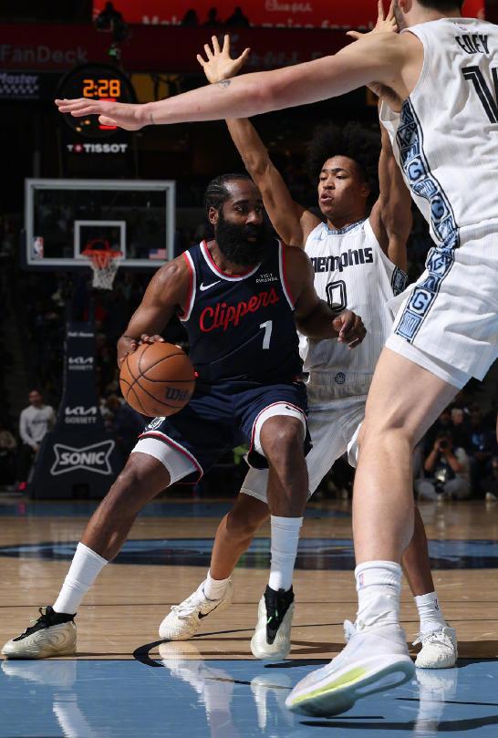 快船98-107不敌灰熊,伦纳德24+8,哈登18+7,科沃德23+14+5